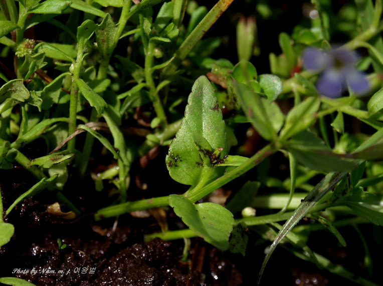 줄기는 높이 7-15cm이고 잔털이 다소 있으며 기부에서 가지가 갈라져서 사방으로 퍼진다.
