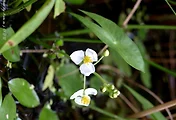 택사가 둥근잎택사에 비하여 전초가 좀 작고 꽃도 작으며, 꽃잎 끝 부분에 연한 붉은색이 보인다.