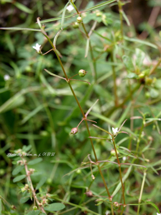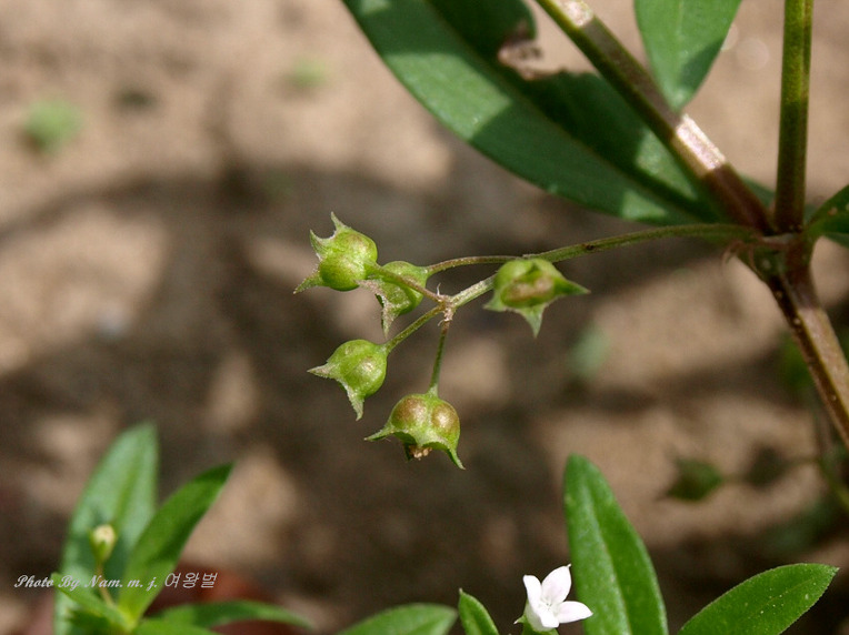 꽃은 8-9월에 피고 지름 2mm정도로서 백색이거나 다소 붉은빛이 돌며 엽액에 달리고 소화경이 열매보다 2-4배정도 길다.