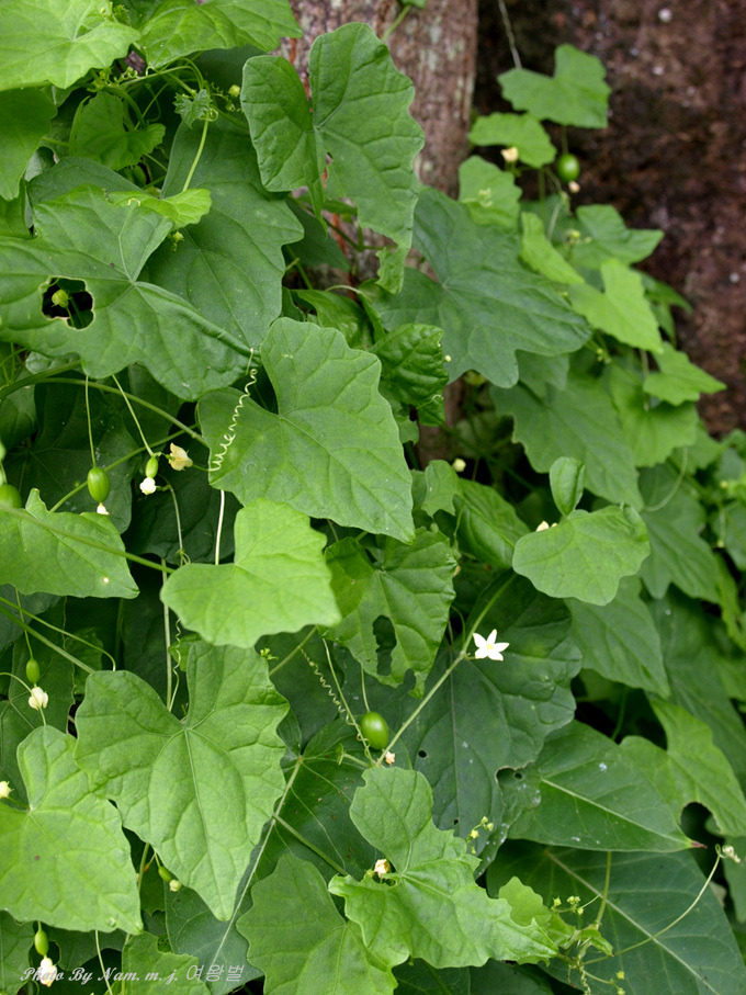 꽃과 열매가 작고 열매에는 능각이 있다. 잎이 새박이랑 매우 닮았다.