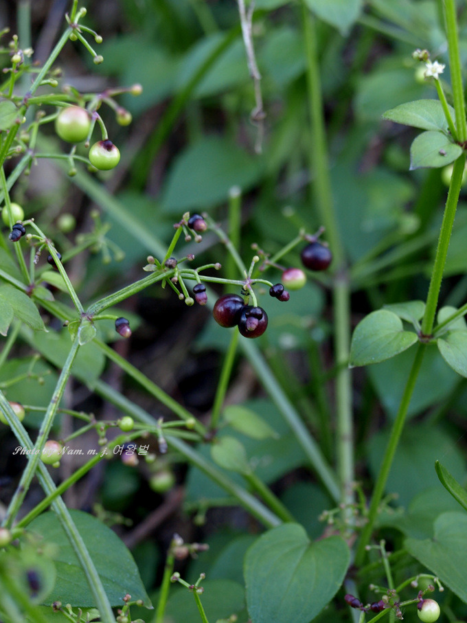 열매가 새앙쥐 눈 처럼 까맣게 익고 있는데 아직도 자그마한 꽃이 피고 있다.