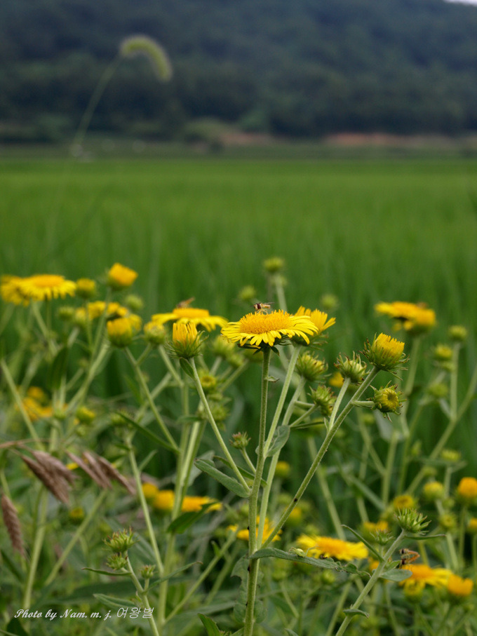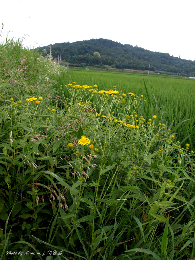 논둑에 금불초가 있다기에 꽃동무를 따라 가니 꽃이 화사하게 폈다. 포편이 가느다란 선형이라 금불초다.
