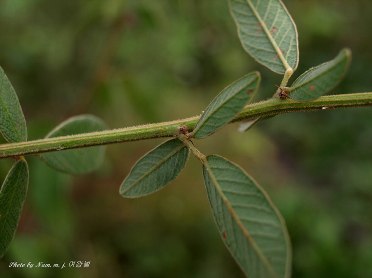 이 녀석은 싸리 종류 중에서 꼿꼿하게 자라며 잎과 줄기 화경에 누른 털이 매우 많은 녀석이다.