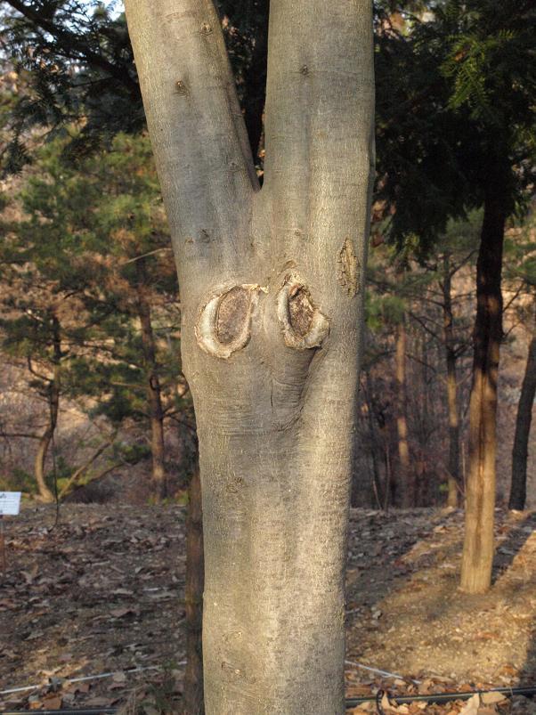 수피는 녹색이 도는 회색이며 터지지 않고 가지는 털이 없으며 어린가지는 흑갈색이며 연한 황색털이 있다. 2년지에는 털이 없고 피목이 많다.