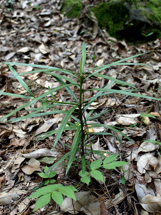 잎은 호생하고 넓은 선형 또는 선상피침형이며 길이 4-8cm, 나비 5-9mm로서 양끝이 좁고 밑부분이 짧은 엽병으로 되며