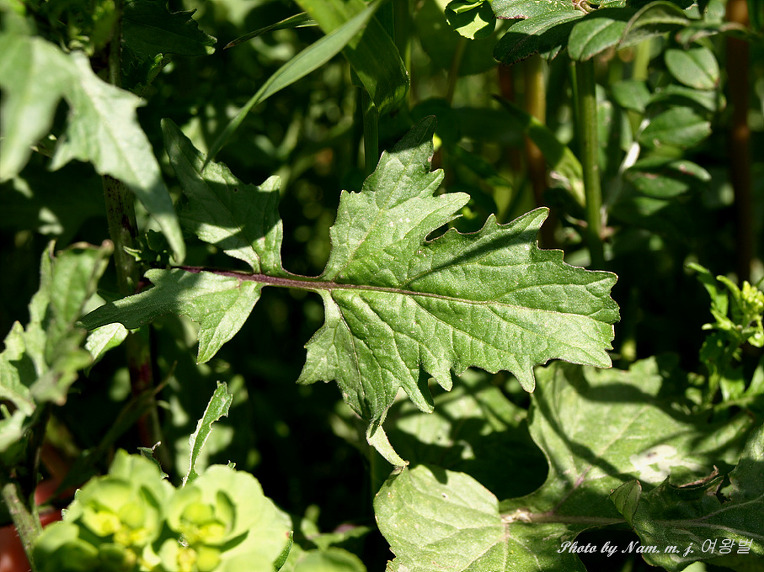 잎은 무잎처럼 깃꼴로 심열하고 열편은 불규칙하고 얕게 갈라신다.