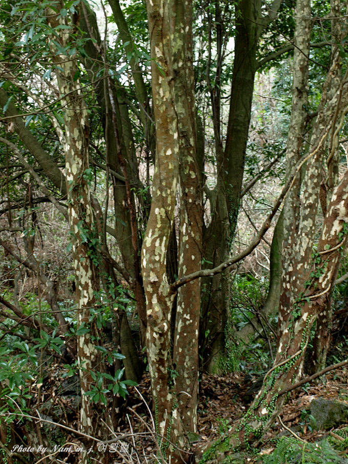 모과나무나 양버즘나무처럼 얼룩무늬 전투복 같은 수피를 가진 녀석으로 남쪽에서 자생하는 상록성 나무다.