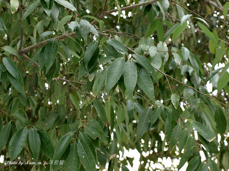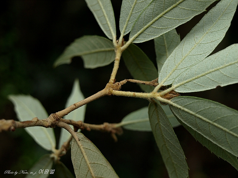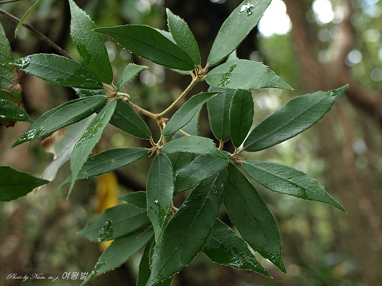 종가시나무 보다도 잎이 좁고 끝이 길게 빠져 있고 자잘한 거치가 잎자루 가까이 까지 나 있었다.