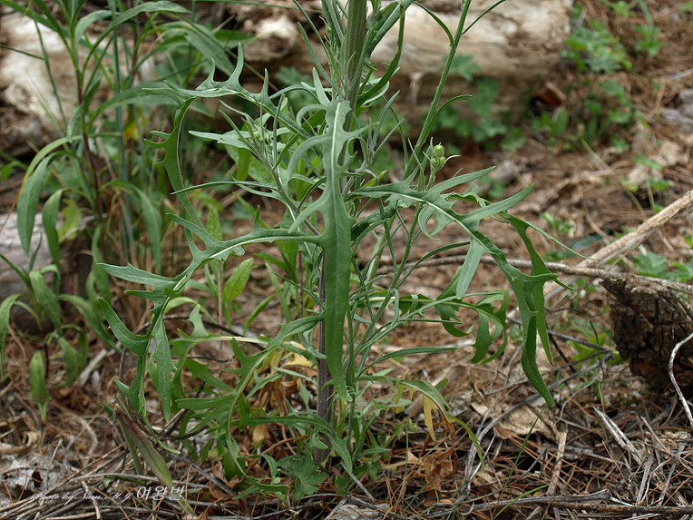 근생엽과 아래 쪽 줄기잎에는 결각성 거치가 있고 경생엽은 좁은 피침형이다.