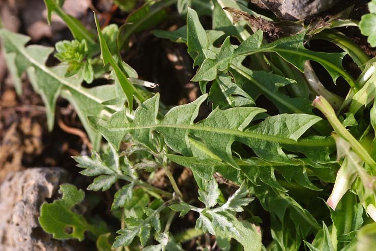 잎은 근생엽은 길이 10-15cm, 나비 4cm정도이고 가장자리에 불규칙한 물결 모양의 톱니가 있으며 잎자루가 있고,