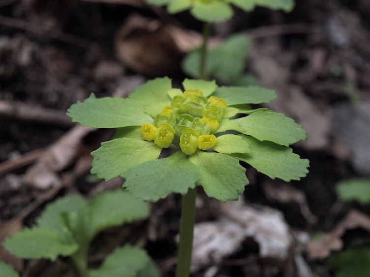 이 녀석 포엽이 황금색에 꽃이 작기에 누른괭이눈이 아닐까 하고 살펴보았더니 무성지에 흰줄무늬가 전혀 보이지 않는다.