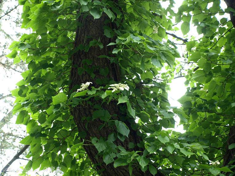 7월 경에 가지 끝에서 지름 20cm정도의 잔털이 있는 큰 취산화서가 발달한다.