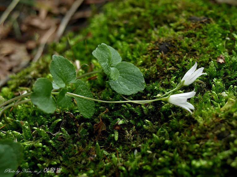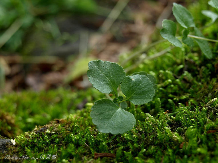 표면에 짧은 털이 산생하며 가장자리에 둔한 톱니가 있고 엽병은 길이 5-15㎜이다.