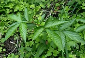 경생엽에 털이 없으며 가장자리에 결각상의 톱니가 있고 엽병은 길며 기부에 침상 탁엽이 있다.