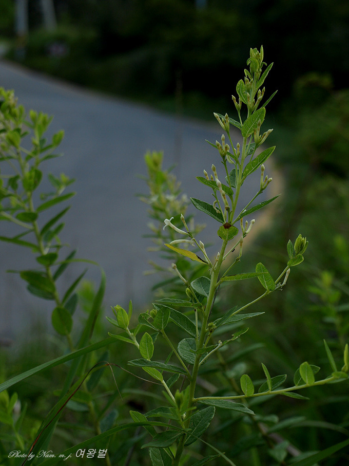 나무라고 하기에는 너무 왜소하다. 비수리 처럼 가지를 타박하게 분지하여 노르스름하게 꽃을 피웠다.