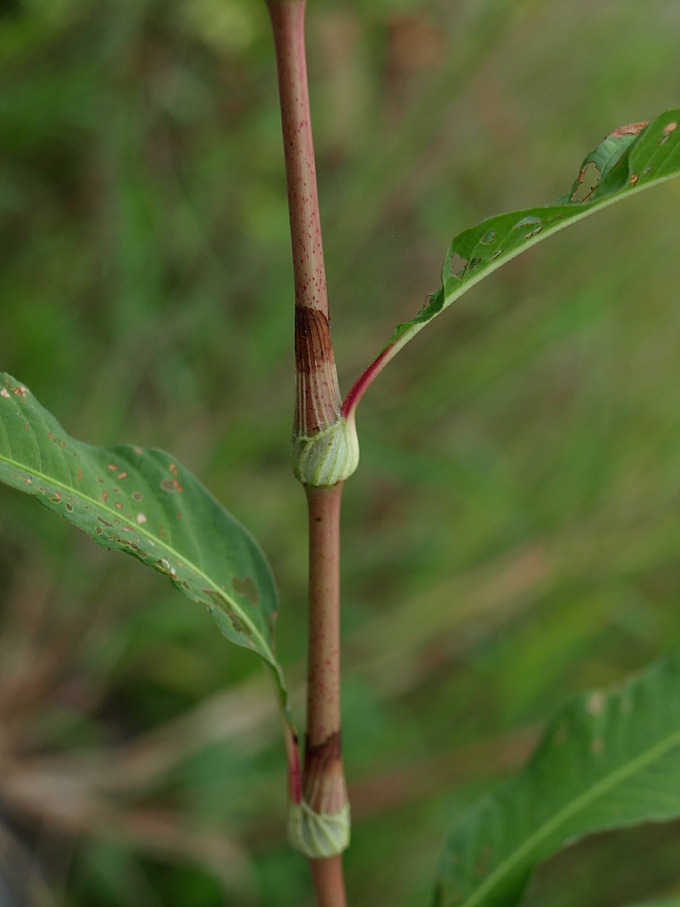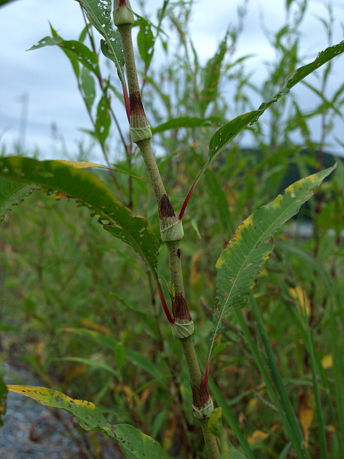 줄기는 장대하며 마디가 퉁퉁하며 가지가 갈라지고 붉은빛이 돌며 흑자색 점이 있다.