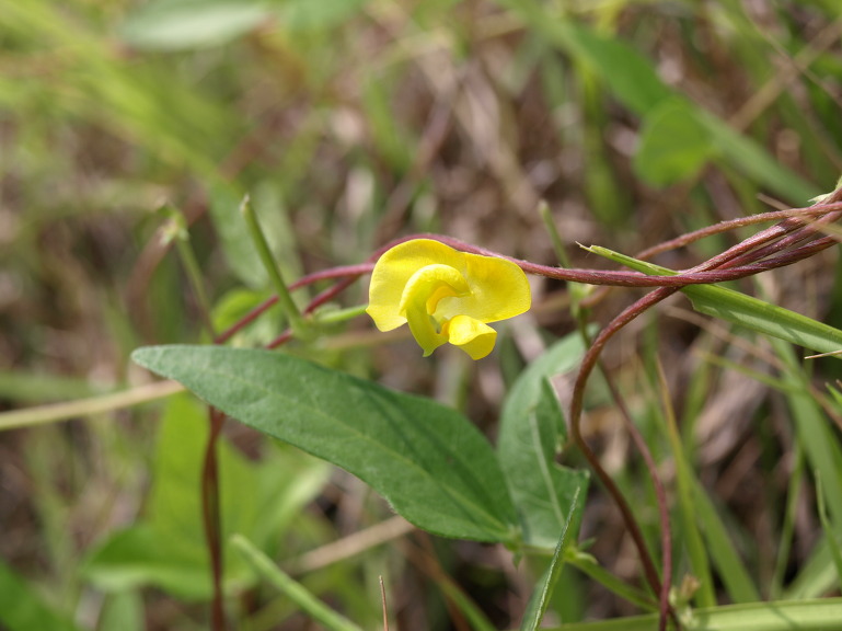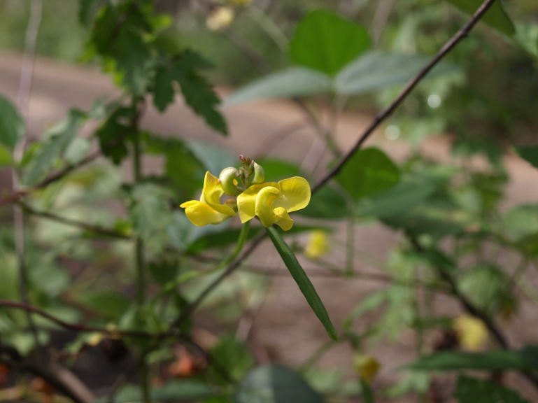 좀돌팥의 잎은 피침형이고, 화경, 화서 줄기에 털이 그렇게 많지가 않다.