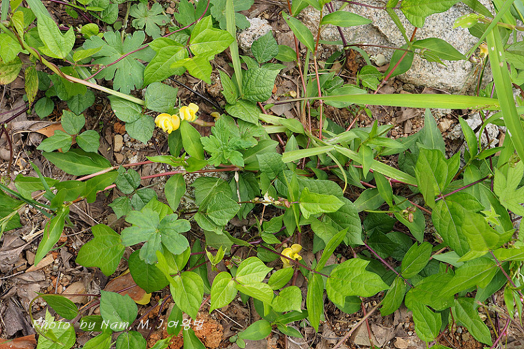 이 녀석이 새팥이다. 잎이 난형으로 넓으며 엽연(잎가장자리)에 얕게 결각이 져 있다.