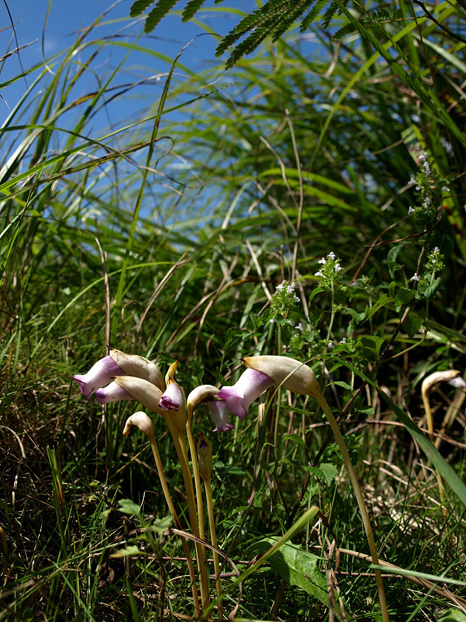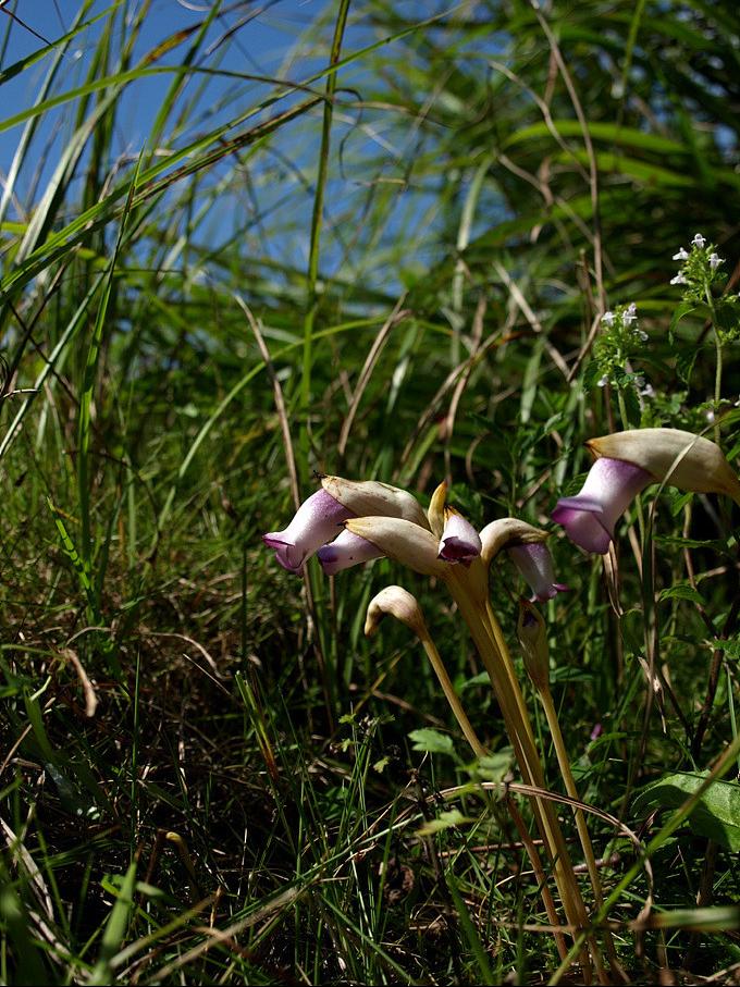 산록도로변 억새줄기를 젖히면 분홍색 화관을 수줍은 듯이 고개 숙이고 있는 야고를 쉽게 찾을 수 있다.