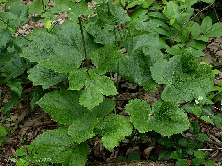 밑부분은 둥근심장형이고 엽연는 고르지 않은 거치가 있다.