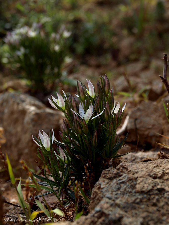 한 뼘도 안 되는 쓴풀 꽃다발이 척박한 양지쪽에 많이도 앉아 있다.