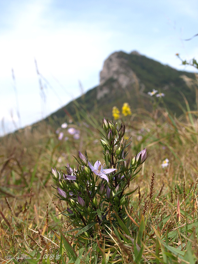 능선 위 너른 자리에 자주쓴풀이 귀엽다.