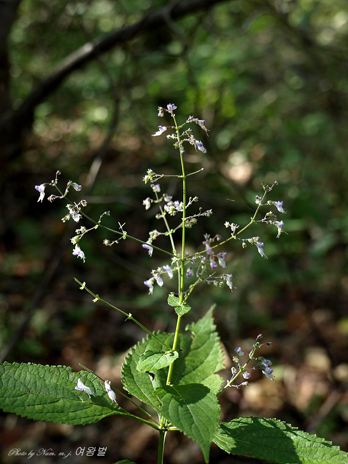 이 녀석은 자주색 방아풀에 비하여 전체적으로 녹색을 띠는데 화관은 연한 자주색을 띤다.