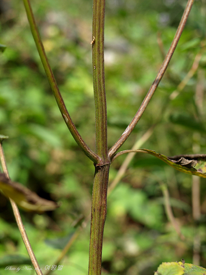 높이가 1m에 달하고 능선이 예리하며 곧게 서고 전체에 밑을 향한 짧은 복모가 밀생하며 긴 가지가 갈라진다.