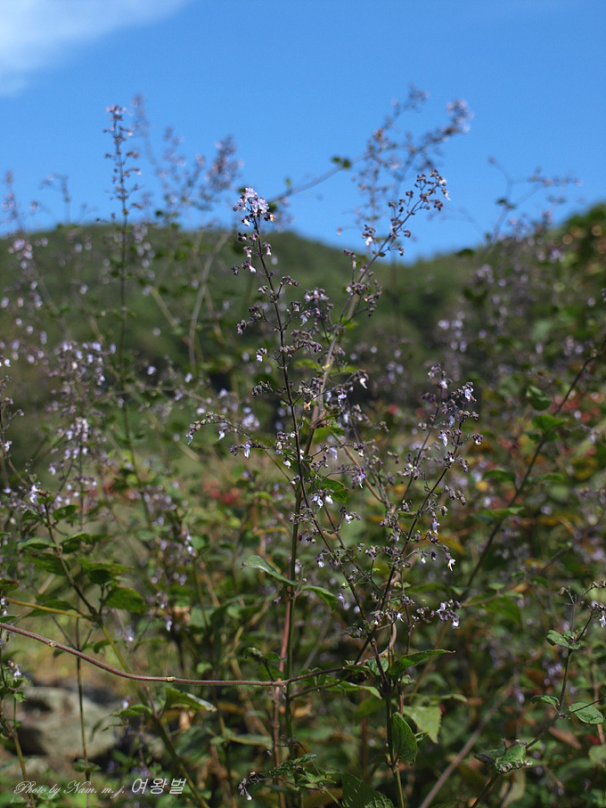산으로 오르는 초잎 등산로에는 자주색 방아풀이 한창 꽃을 피우고 있다.