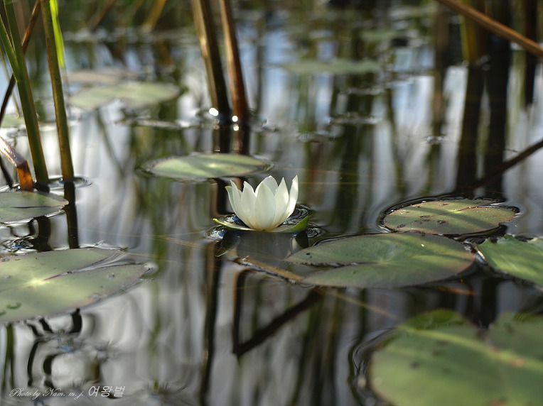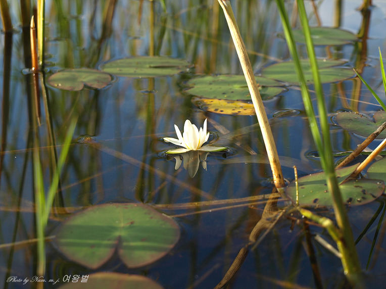 꽃은 6-7월에 피고 백색이며 지름 5cm정도로서 밤에는 접어들기 때문에 수련이라고 한다.