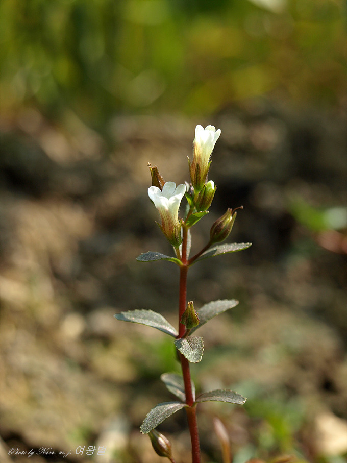 꽃받침은 길이 5~7mm로서 5개로 중열되며 열편은 좁은 피침형이고 화관은 길이 10mm 정도로서 다소 황백색이 돌며 4개의 수술 중 2개가 짧다.