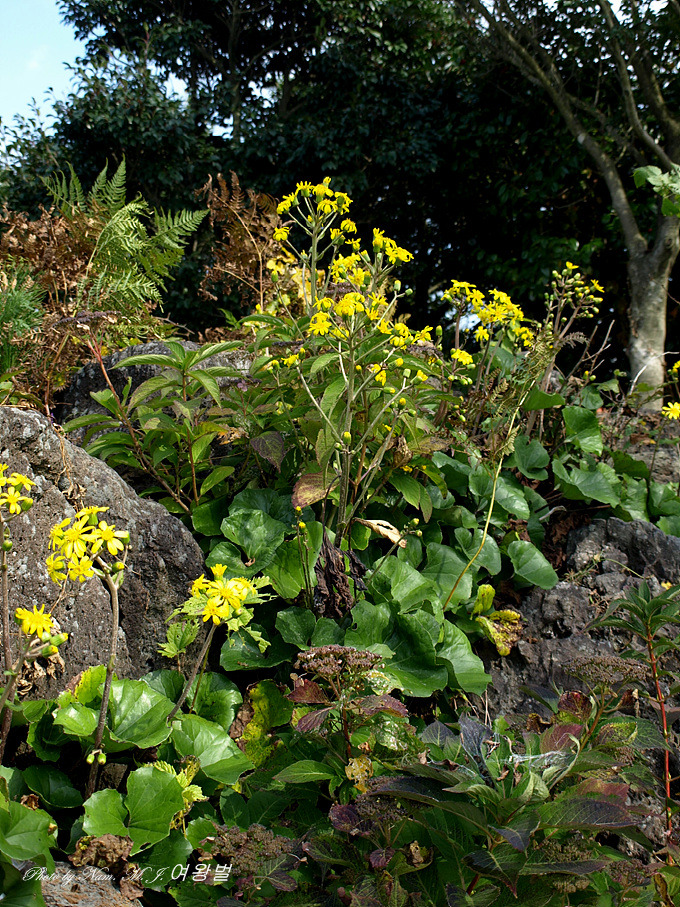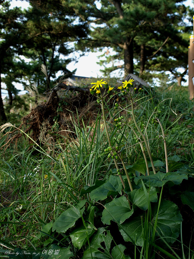 우리가 나물로 먹는 머위의 사촌이지만 이 녀석은 잎이 두텁고 잎 앞면에 윤채가 있고 꽃은 곰취를 닮은 노란색이다.