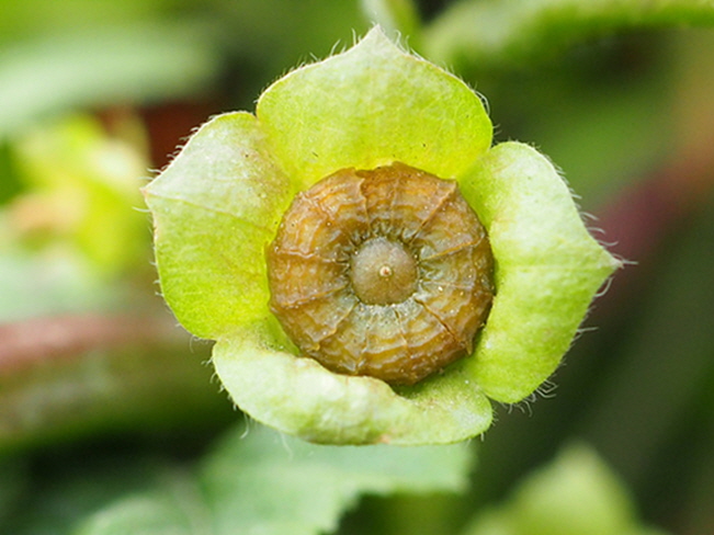 | 난쟁이아욱 열매는 12~15개 분과이고 분과 표면에 털이 있다. |