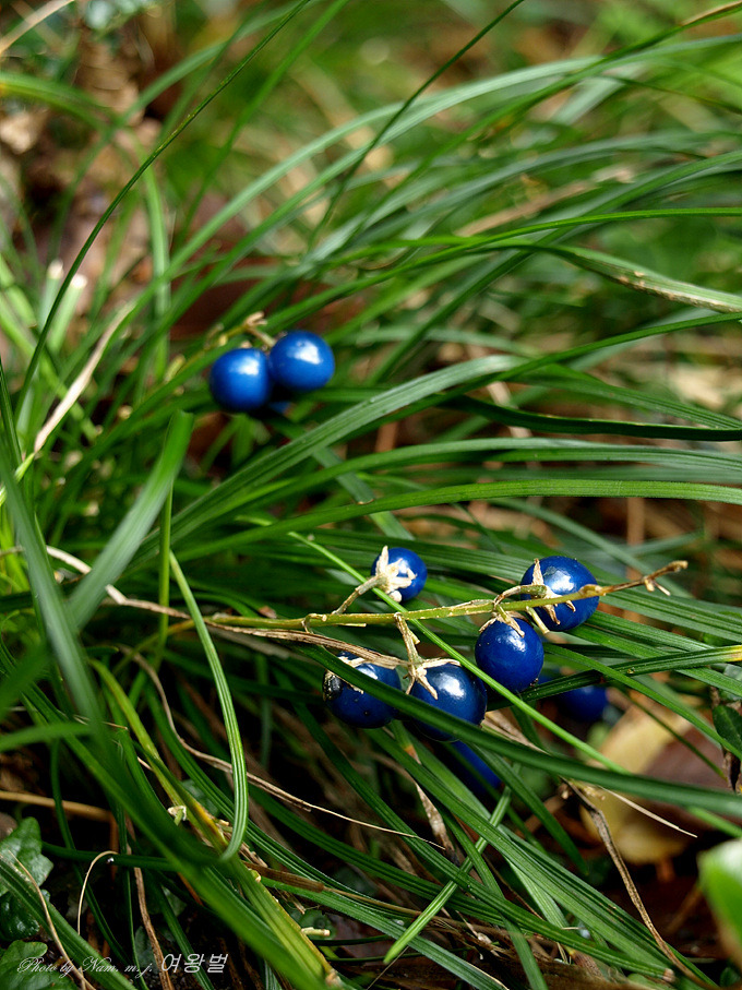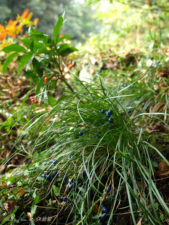 이맘 때 쯤 소엽맥문동 열매가 파랗게 익어서 구슬처럼 반짝거리고 있는데