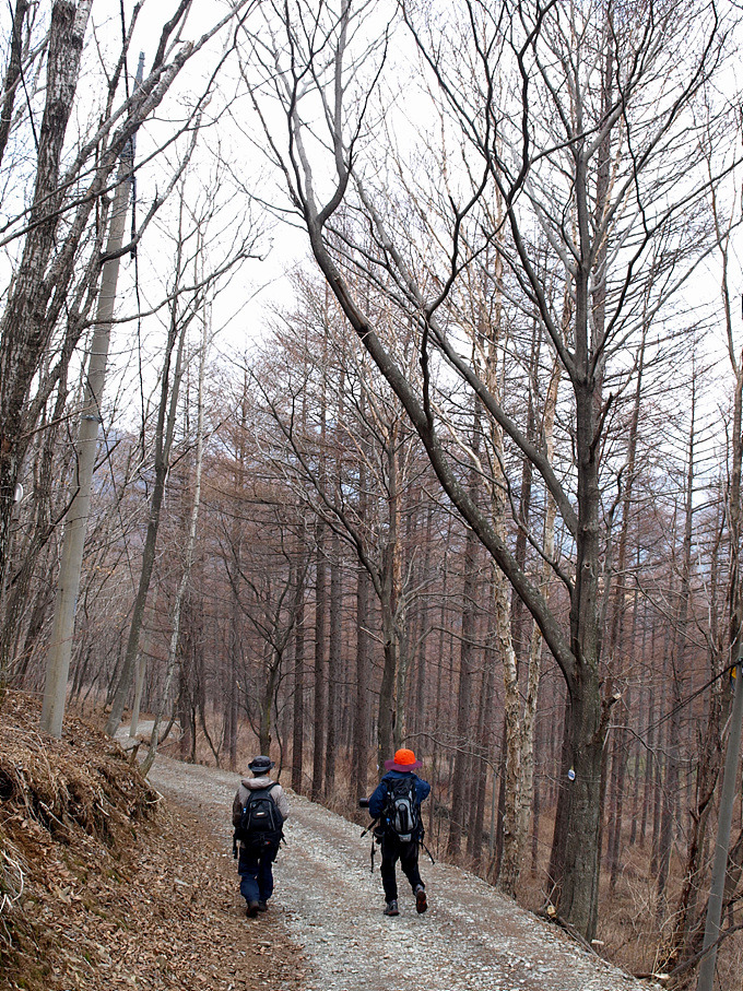 4월의 태백산은 아직도 겨울인 듯 나뭇가지에 움직임이 없다.
