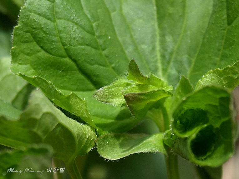 원줄기는 꽃이 진 다음 높이가 15-30cm에 달하며, 원줄기 끝에 엽병이 거의 없는 1쌍의 대생엽이 달리는데