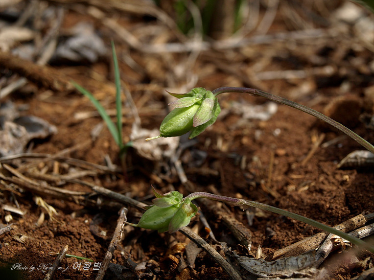 화경은 뿌리에서 나오며 4월에 연한 자주색꽃이 피고 꽃잎은 길이 13-15mm이며 측판에 털이 있다.
