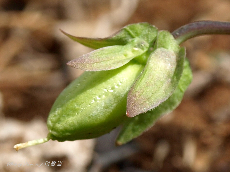 꽃받침잎은 좁은 난형 또는 넓은 피침형이며 길이 6-8mm이고 부속체는 편원형으로서 밋밋하다.