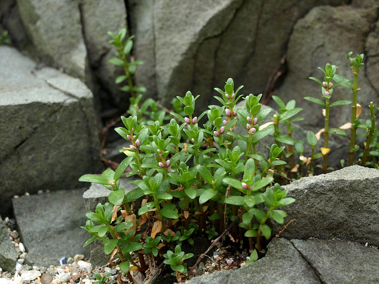 꽃은 연한 홍색이고 화경이 거의 없다.