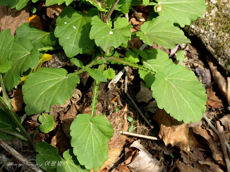 가장자리에 결각상의 톱니와 더불어 불규칙한 톱니가 있으며 엽병은 길이 1-2cm로서