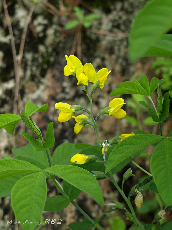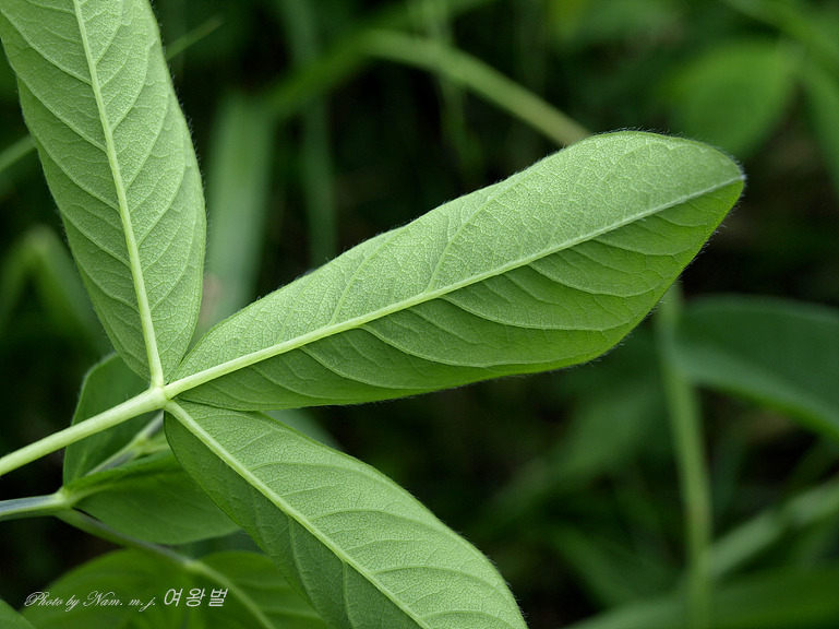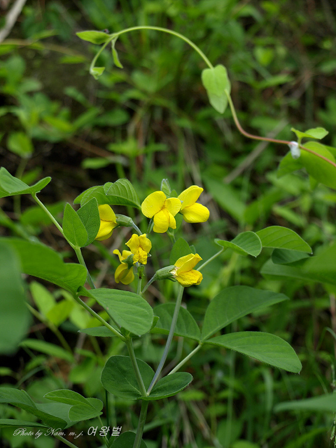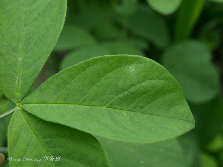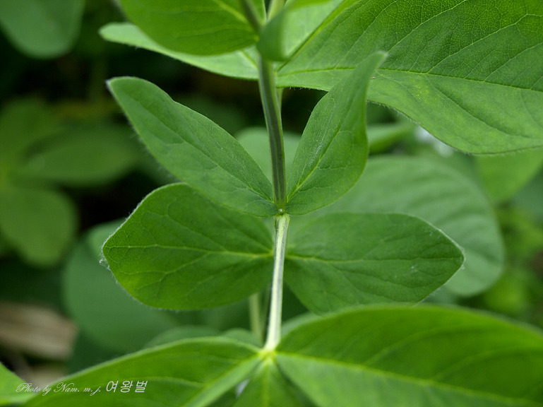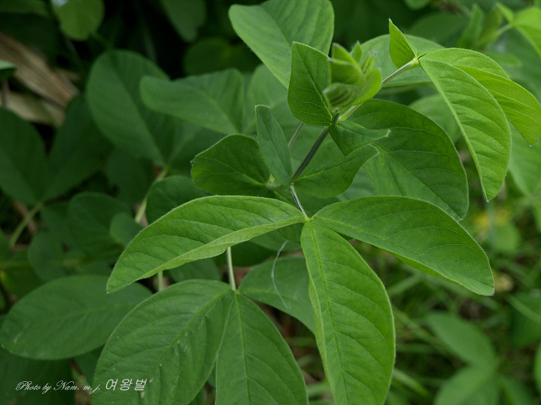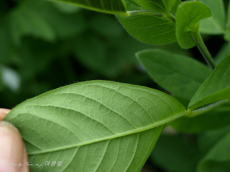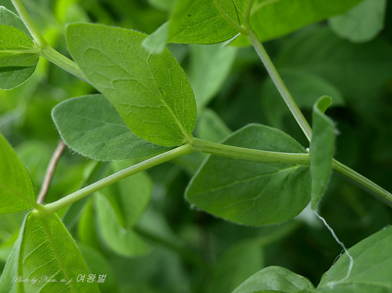 잎은 3출엽으로 잎 뒷면 맥 위에 털이 있었다
