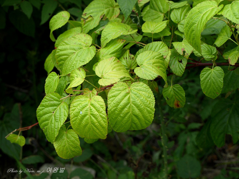 잎은 호생하고 난형 또는 난상 피침형이며 점첨두이고 예저 또는 심장저이며 길이 8-15cm로서