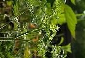 잎은 4개씩 윤생하고 우상으로 깊게 갈라지며 엽병이 없고 수중엽은 열편이 털처럼 가늘며 갈녹색이고