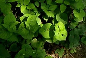 개화기가 지난 지금 잎 표면에 알록제비처럼 흰 무늬가 있다. 위쪽 오른쪽 구석의 녀석은 잎의 흰 무늬가 없다.