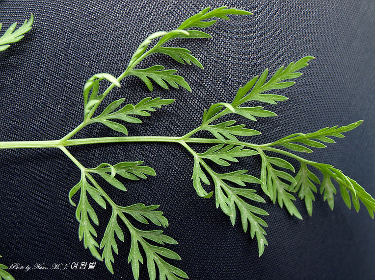 잎은 호생하며 삼각상 난형이고 3회 우상으로 잘게 갈라지며 최종열편은 선형이고 길이 2-10mm, 폭 1-2mm로서