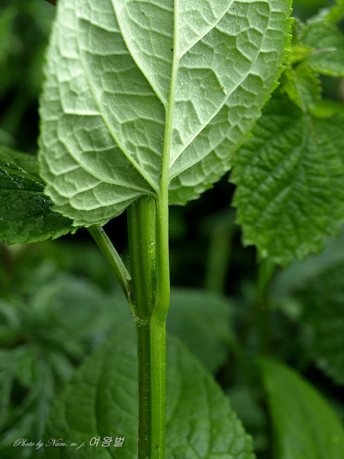 뒷면 맥을 따라 털이 조금 있고 줄기에도 털이 거의 없다
