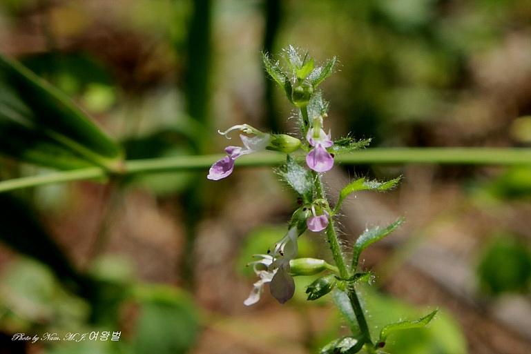화서 3~5cm 포 : 꽃받침과 길이 비슷, 넓은 난형,꽃받침 : 윗부분에 털 다소, 간혹 선모, 꽃받침 끝이 둔함 |