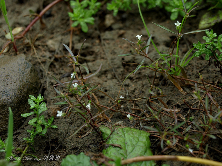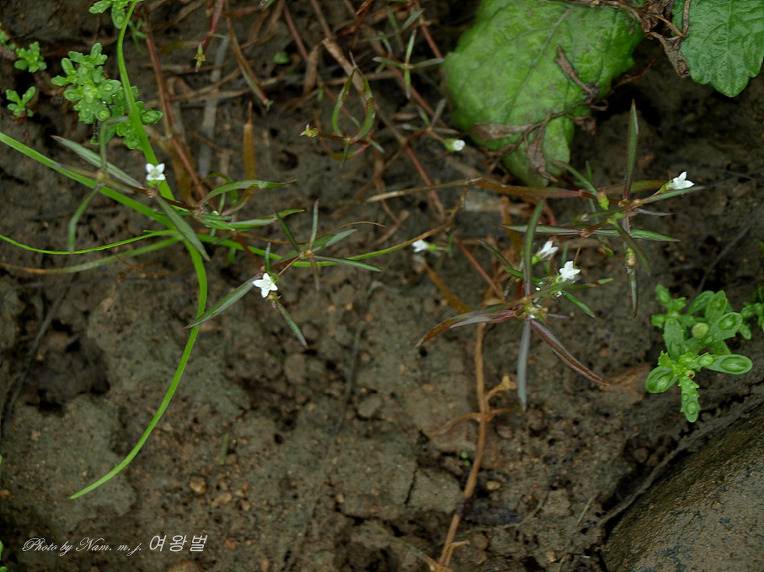 선형의 가느다란 잎이 눈에 들어오기 시작하자 외풀과 주름잎 사이에 온통 이 녀석이 납작하게 업드려 있다.