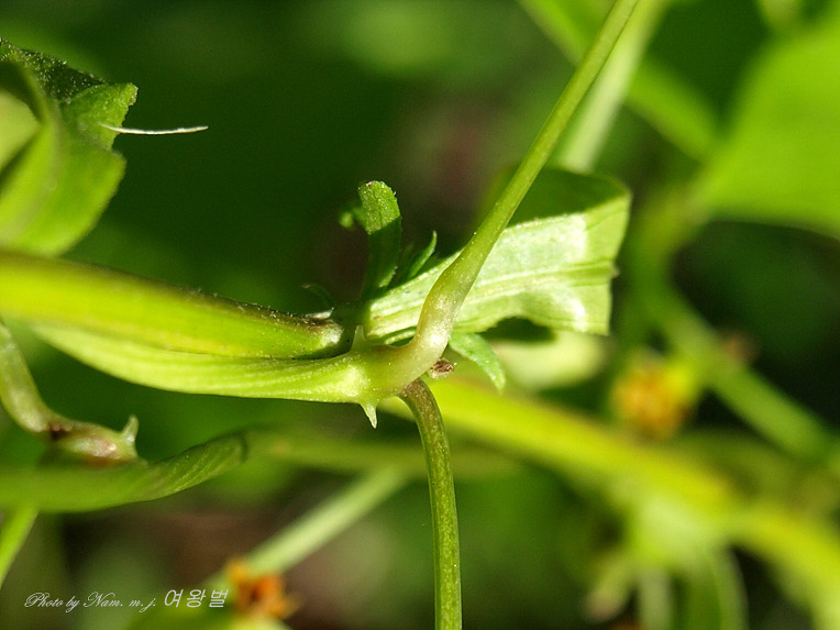 잎자루 기부에 뾰족한 1쌍의 돌기가 보인다. 눈으로 확인하지 않아도 손으로 만져보면 돌기가 느껴진다.