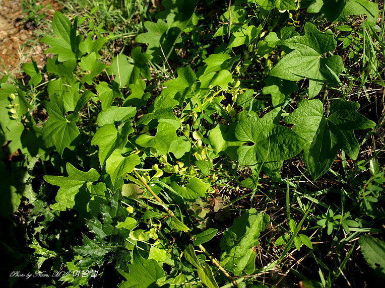 단풍마는 잎자루 기부 양쪽에 소돌기가 있는 특징이 있어서 그 소돌기를 확인하면 쉽게 이름 불러 줄 수 있다.